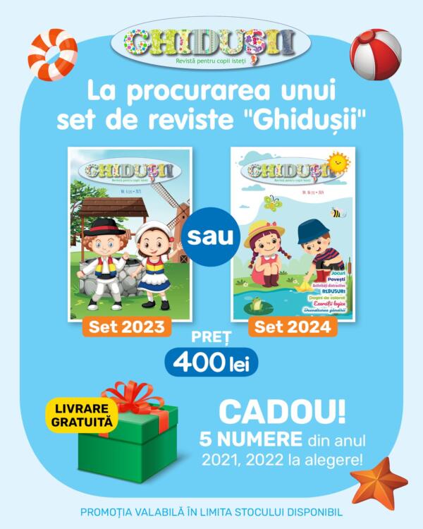 Set din 10 reviste Ghidusii din 2024 și cadou din 5 reviste 2022 su 2021, la alegere